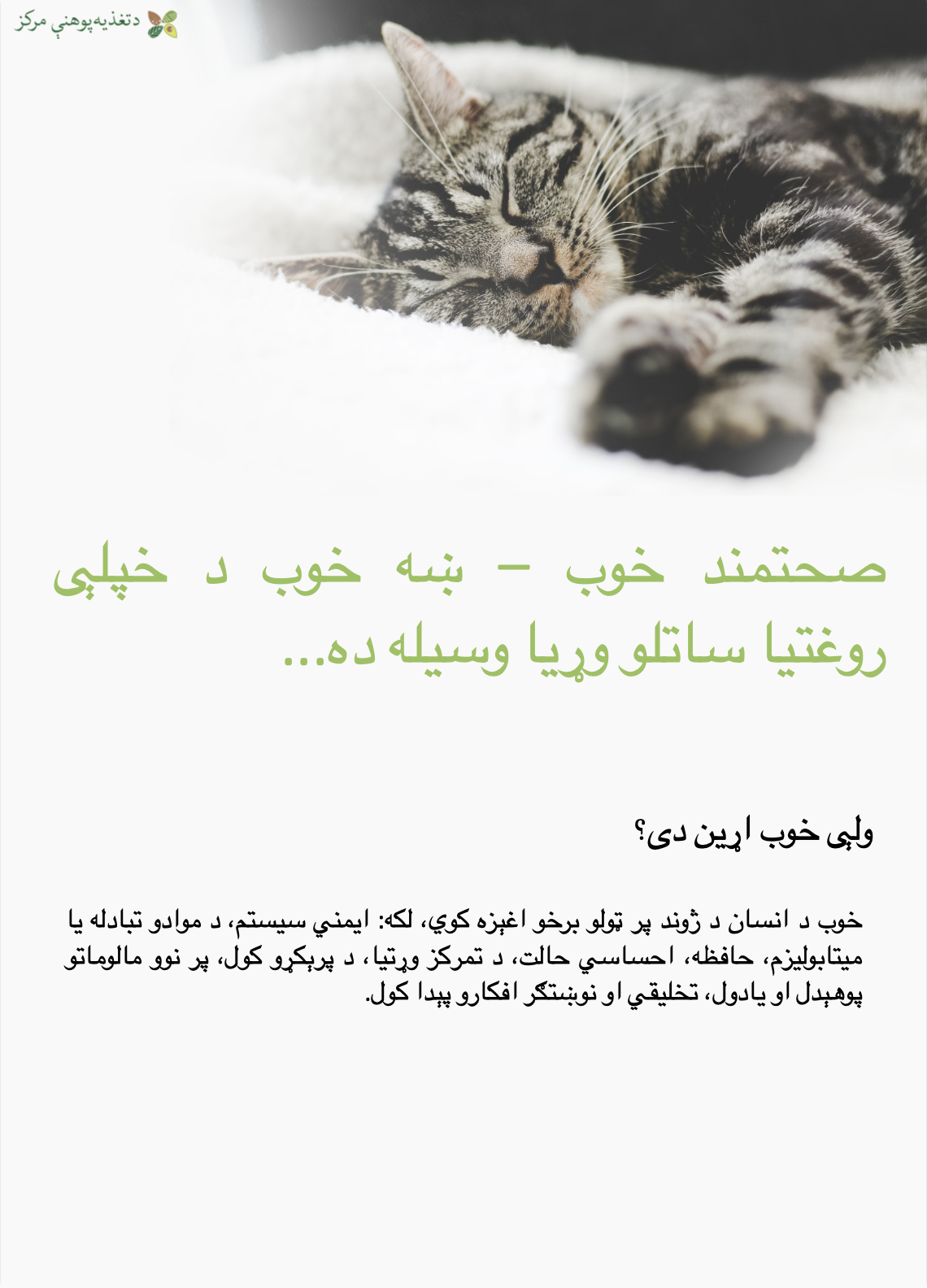 | | که غواړئ تغذیهپوهنه ووایئ، زموږ له وړیا موادو یې پیلولی شئ. د اړیکو شمېره مو پرېږدئ، موږ به د لاندې ممکنه ارتباطي کانالونو له لارې تاسو ته وړیا مواد ولېږو. |
